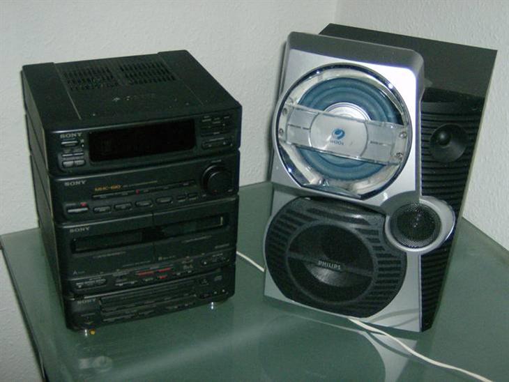 og en Boombox Med to af hver enheder(bas, mellemtone og diskant) ca 120w i alt